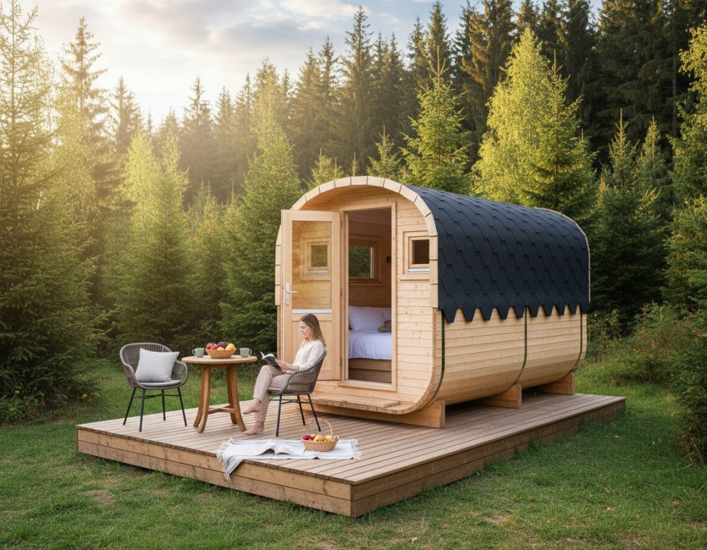 Entdecken Sie vielseitige Unterkunftslösungen, die auf jedem Grundstück funktionieren – von Cottages im modernen skandinavischen Stil bis hin zu urigen Campingfässern mit hohem Erlebnisfaktor. Alle Modelle werden fertig aufgebaut geliefert und können komplett nach Ihren Wünschen angepasst werden: Farben, Raumaufteilung, Ausstattung, Dämmung, Betten, Küche und Sanitär.