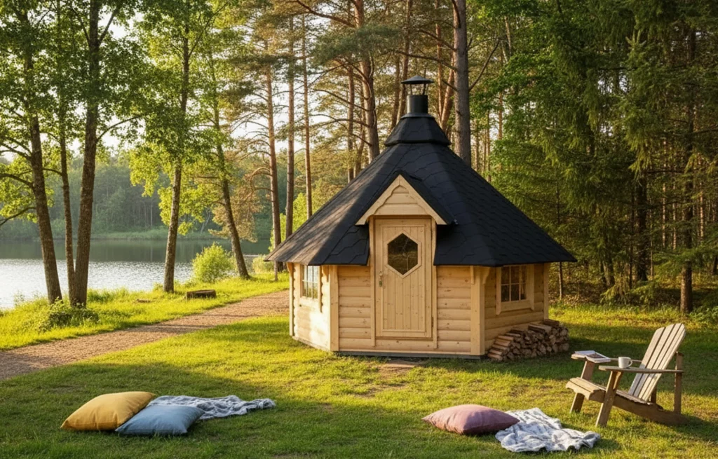 Die Grill Kota ist eine hochwertige Grillhütte im skandinavischen Stil – ideal für Campingplätze, Ferienparks, Vermietungen und private Grundstücke. Robust, gemütlich und vielseitig einsetzbar, bietet sie den perfekten Ort für gesellige Abende, kulinarische Erlebnisse und einmalige Aufenthalte.